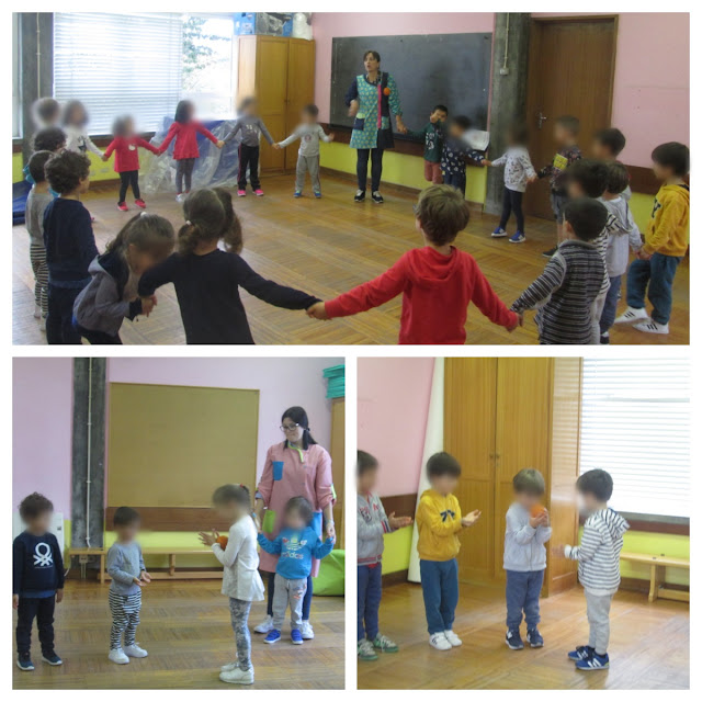 Foi só de tarde que pusemos o corpinho a mexer, hoje com o jogo do coração saudável: atiramos a bola às imagens e reproduzimos o exercício que calhava!