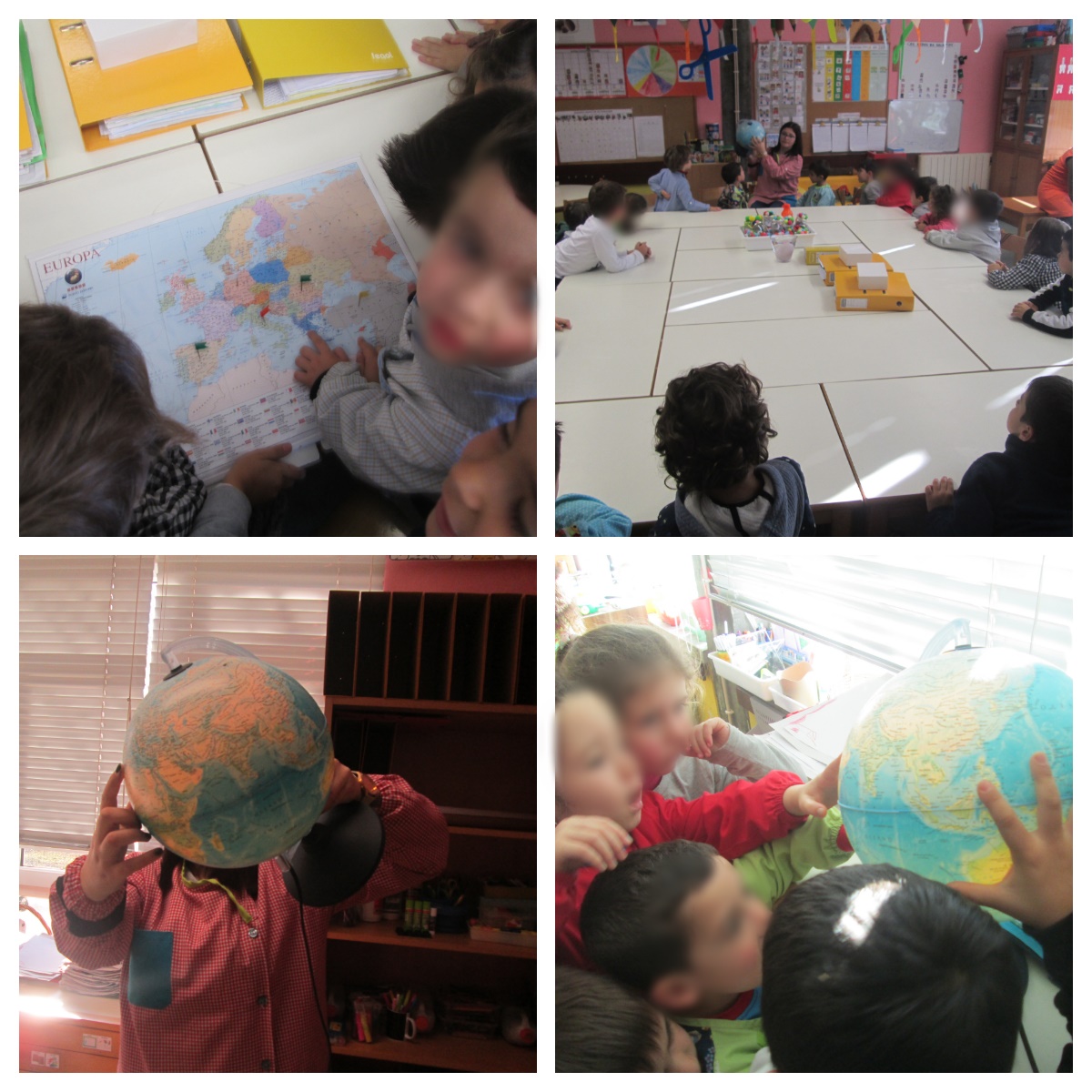 Mas esses não dava para ver no mapa da Europa, porque ficam na África e na América e então a I. sugeriu ver no Mapa Mundo, ou no globo terrestre.